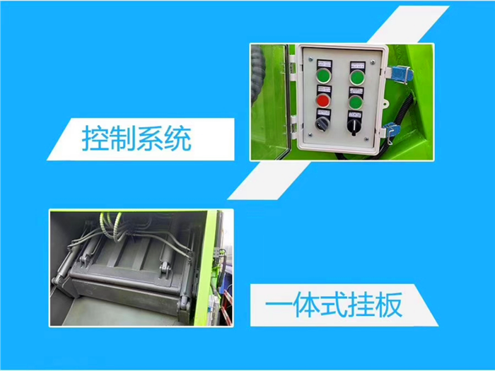 4. 电器系统:PLC德国控制器,对压缩过程进行编程,配合液压机构对车辆功能实现一键式操作,简便、准确的完成操作过程。电气操作分驾驶室部分及翻转器部分。驾驶室电气操作键可以控制推板的前后移动,翻转器的升降等。